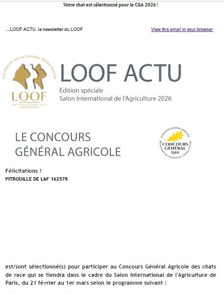 Le concours sera retransmis en direct sur le site youtube du LOOF, du CGA et du Salon de l’Agriculture.